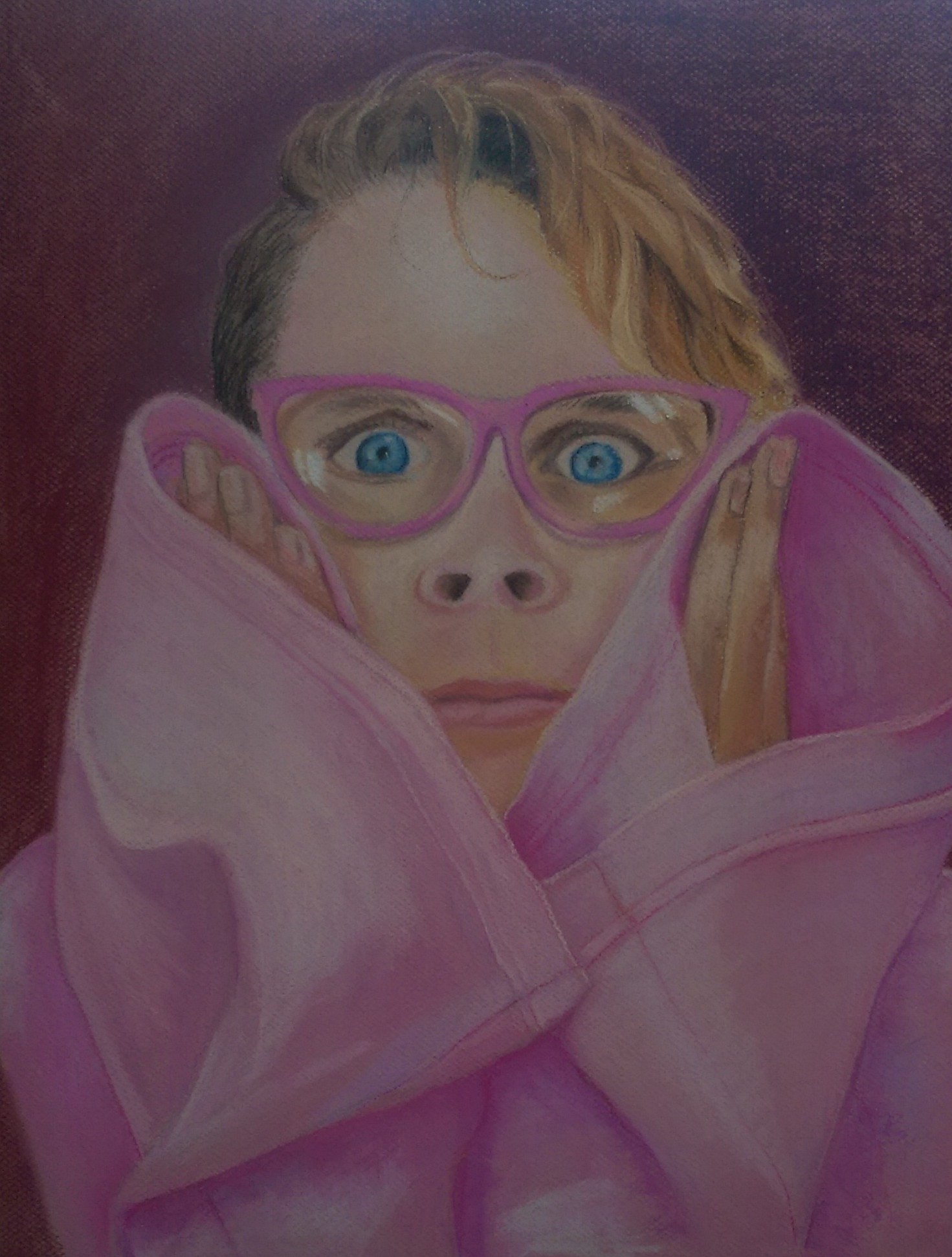 I had to enlarge the subjects glasses, because I knew how much she wanted to get the same pair but in a bigger size, but couldn’t find them. So I took advantage of being able draw anything I want and scaled them up a bit. Though I realized in future I have to be careful with that, because it might affect the resemblance of the art work when compared to the with he original photo. When one object becomes different in size, it can affect the proportions of other elements in relationship to each other.